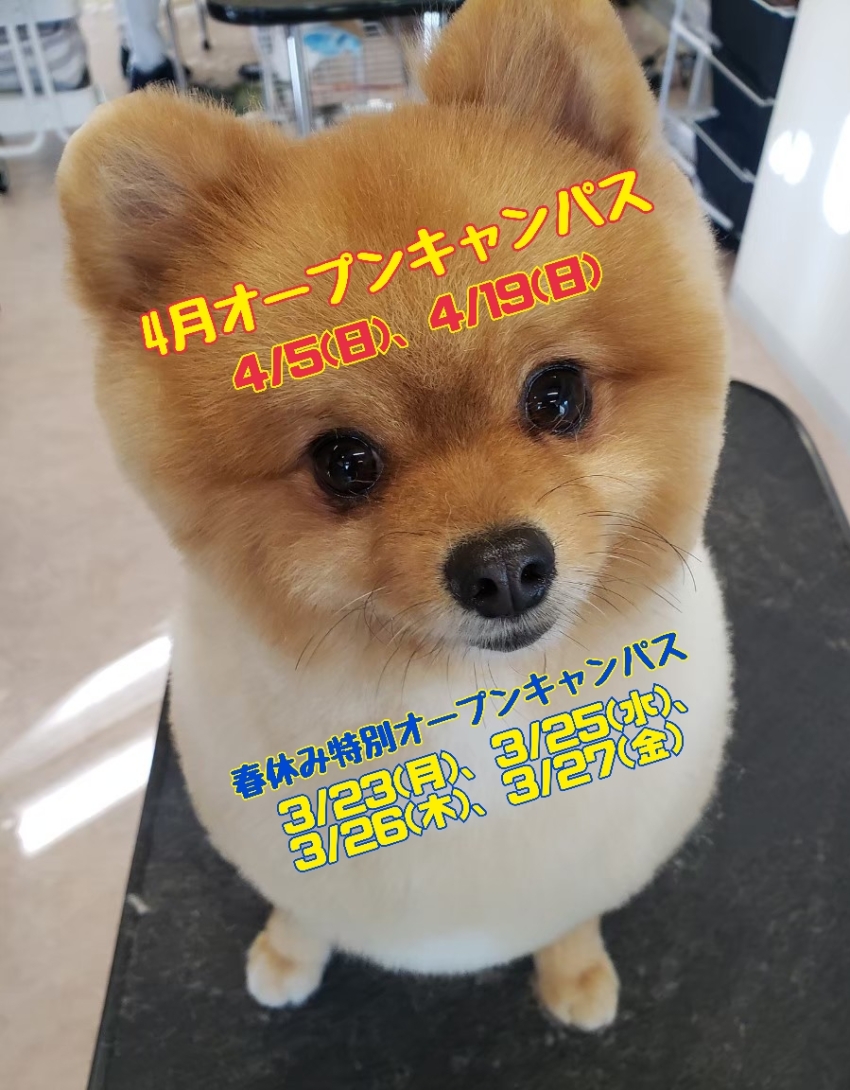 春休みオープンキャンパス!3/23(月)トレーニング、24(火)動物看護、26(木)トリミング、27(金)アニマルケア